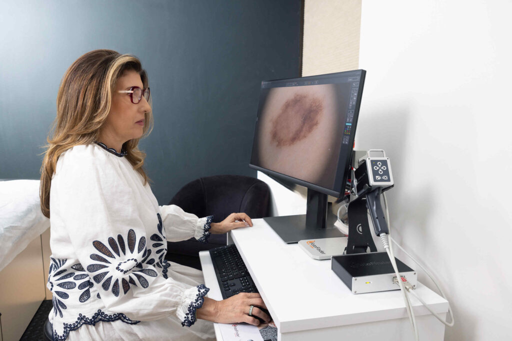 O dermatologista é o profissional capacitado para avaliar lesões suspeitas, diferenciar pintas benignas de lesões malignas e indicar o tratamento adequado.